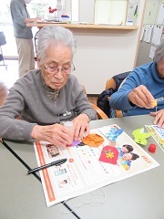 皆さん見本を見ながら、先生に教えていただきながら熱心に行なわれていきます(*^▽^*)