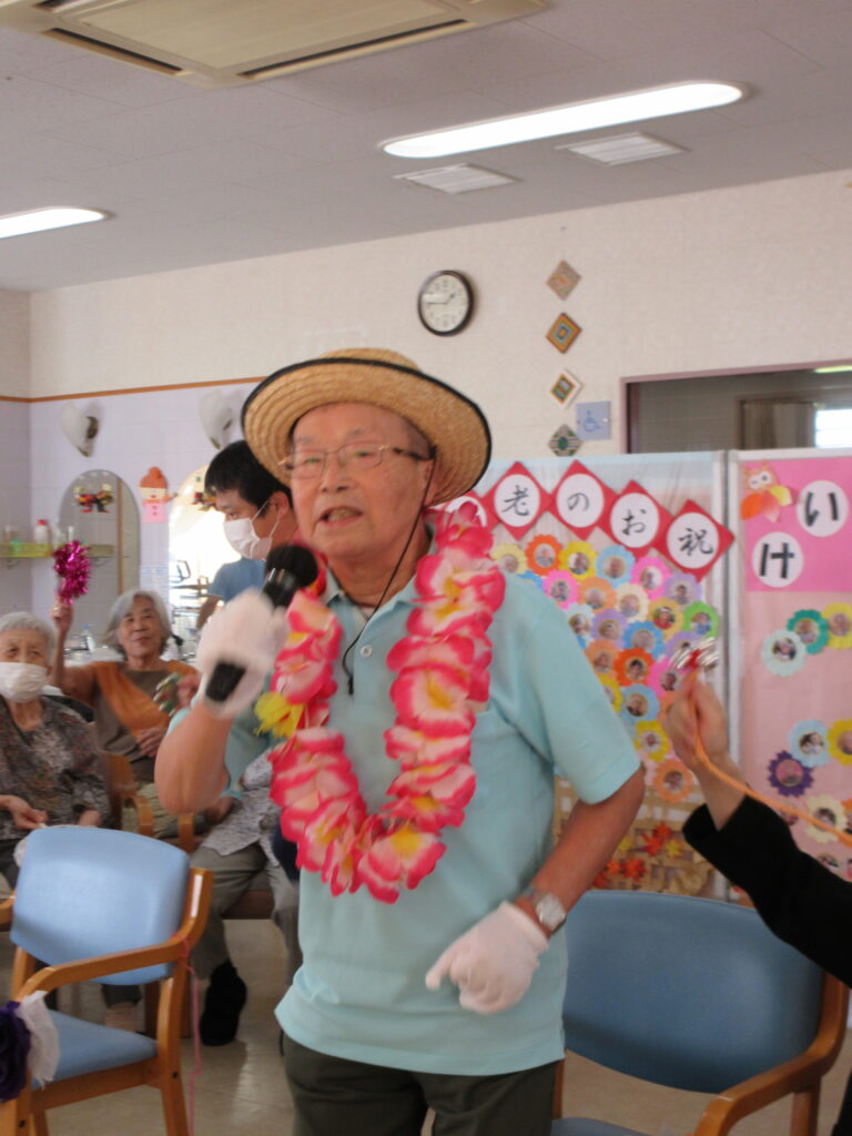 今回は敬老の日のお祝いとして。また、目垣けいあいの里はおかげさまで開設25周年を迎え、26年目となりましたのでそちらの記念も含めて行ないました『紅白けいあい歌合戦』のもようもご覧いただきます。(*^-^*)