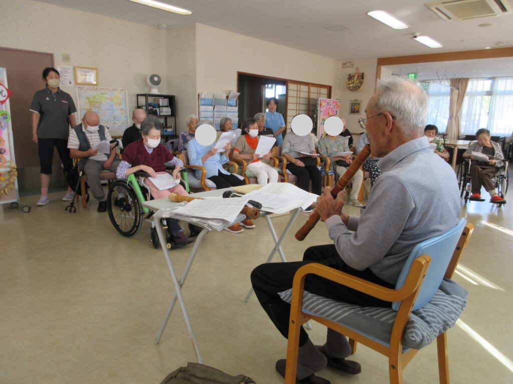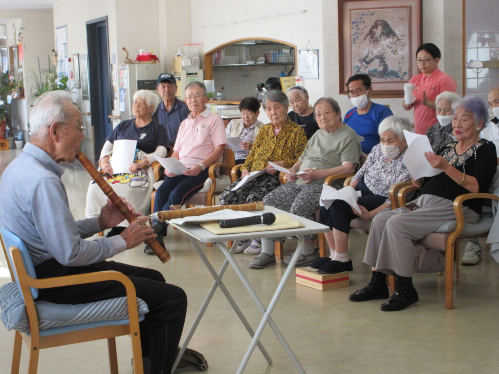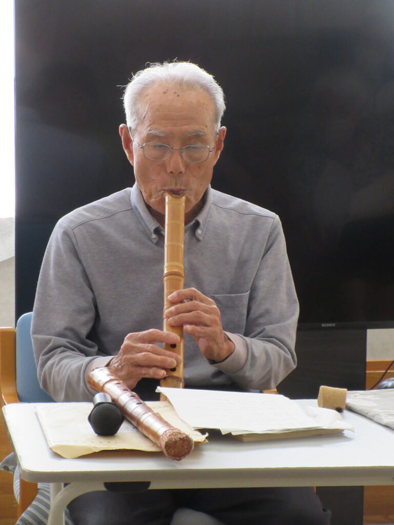演奏が始まり、静寂の中に尺八の音色が広がります☆ 演奏いただいたのは「北国の春」や「故郷」。「岸壁の母」など耳馴染みのある懐メロのオンパレード♫