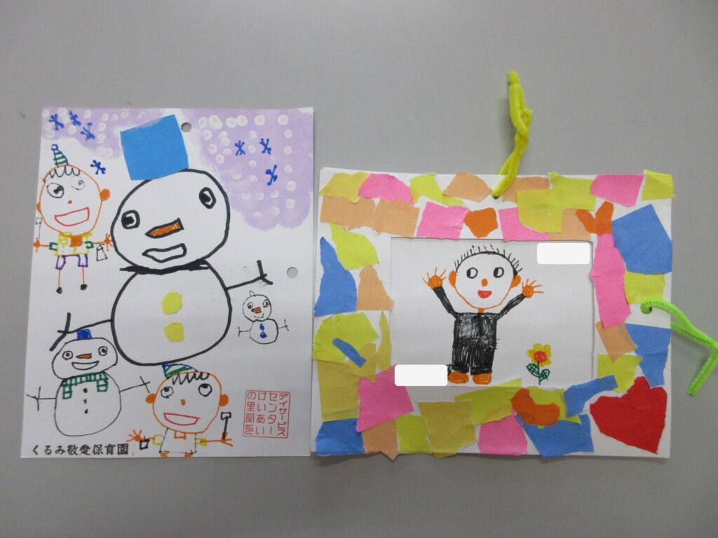 フレームの真ん中には子供達に絵を書き入れてもらいました(*^-^*)
